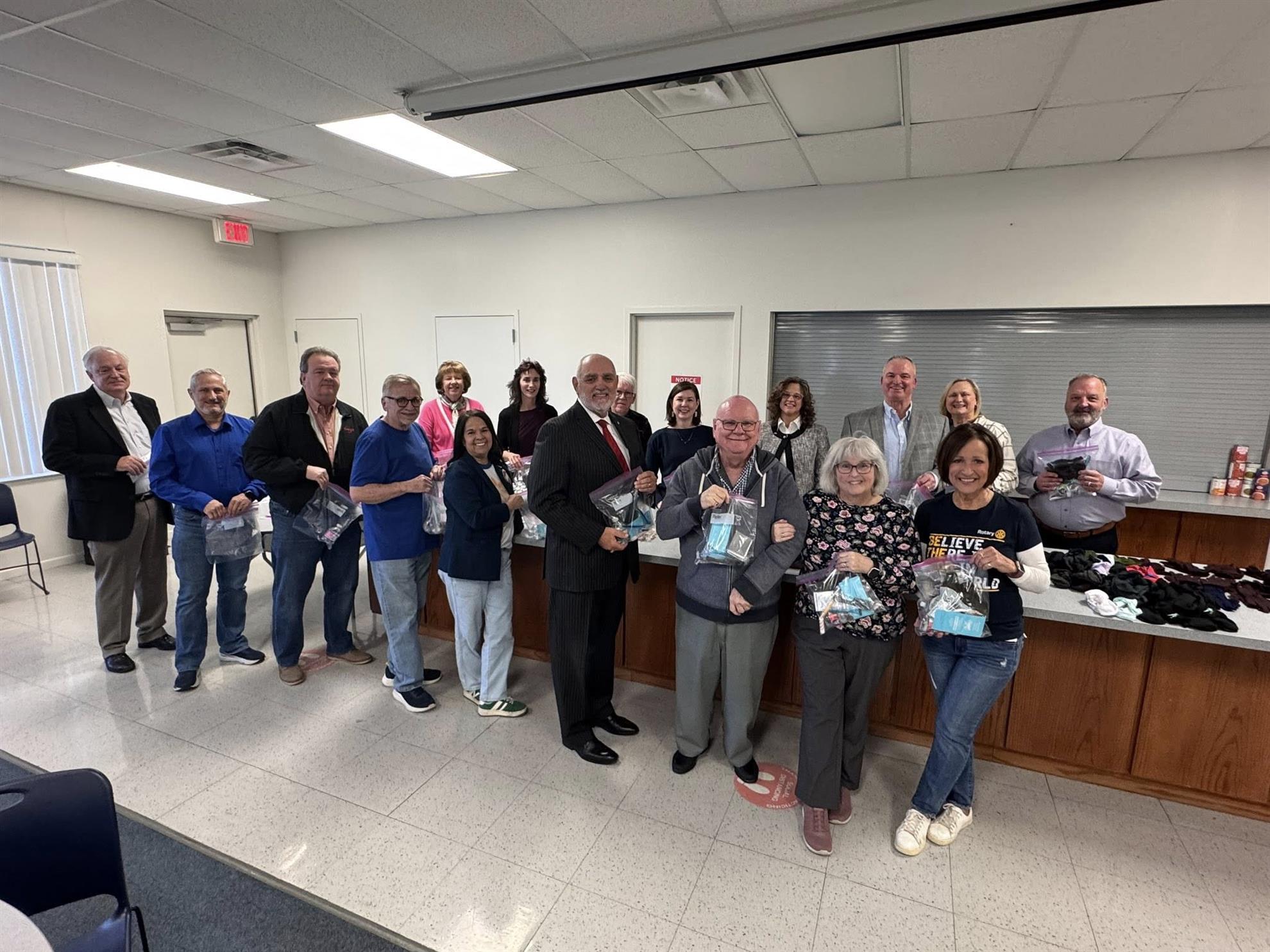 Two dozen Temple Rotary members worked together to pack 200 homeless hygiene kits to be distributed by the Temple Police Department and a pair of local non-profits.