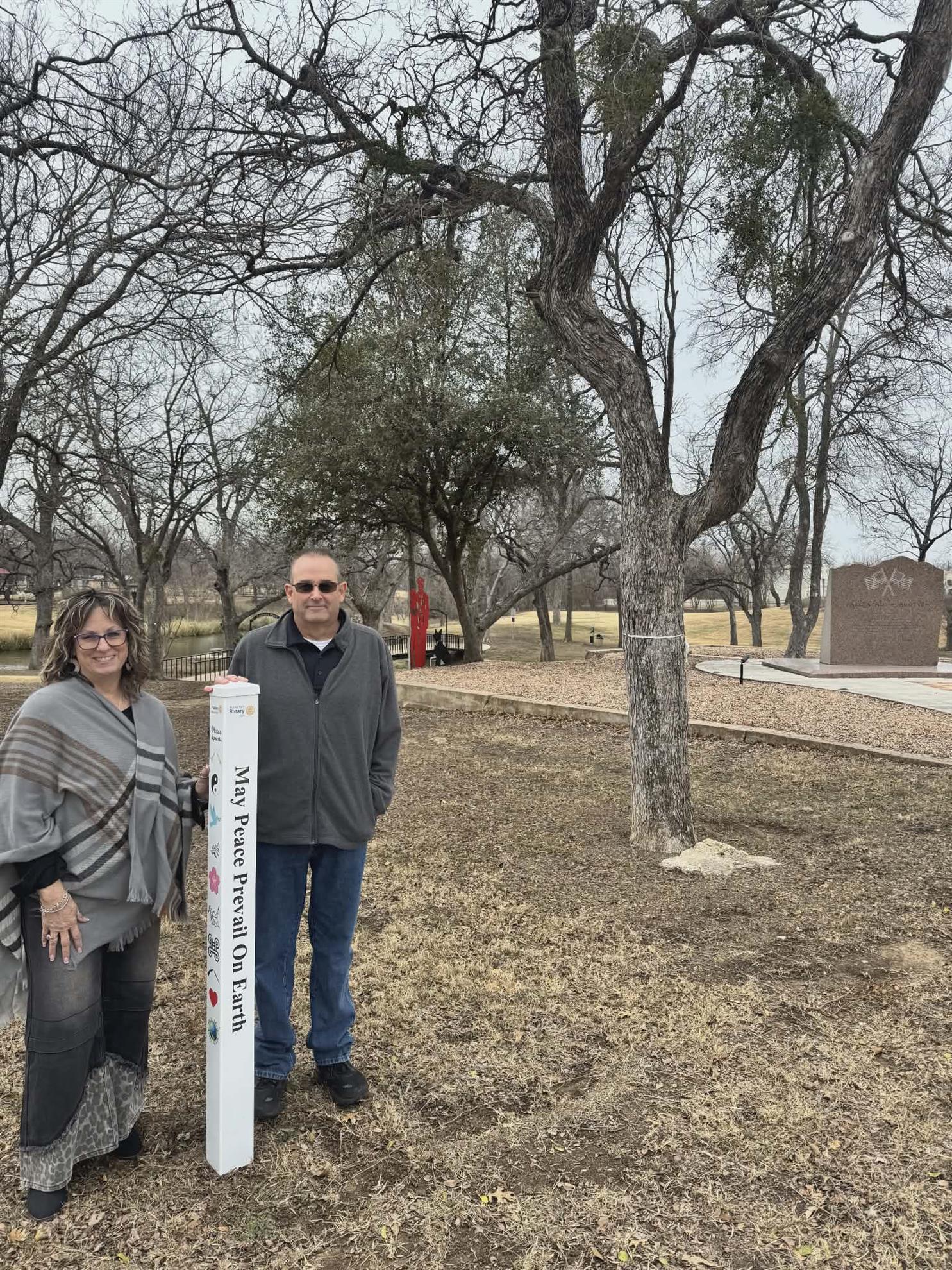 A meaningful new symbol now stands at the Marble Falls Rotary Memorial First Responder Park with the installation of a Peace Pole bearing the message “May Peace Prevail on Earth” in multiple languages.
