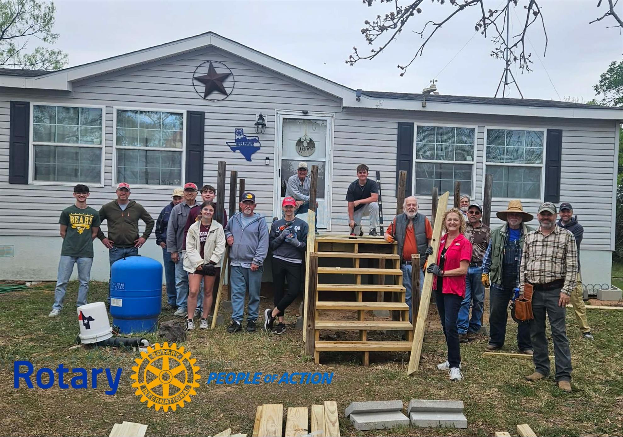 Participating in Rotary Service Texas Day, members of the Rotary Club of Marble Falls stepped into action to serve their community in a meaningful, hands-on way. Focusing their efforts locally in Marble Falls, Rotarians, Interactors, and volunteers came together to rebuild a deck for a family in need, ensuring they can safely enter and exit their home while also creating a welcoming space where they can gather, connect, and make lasting memories.