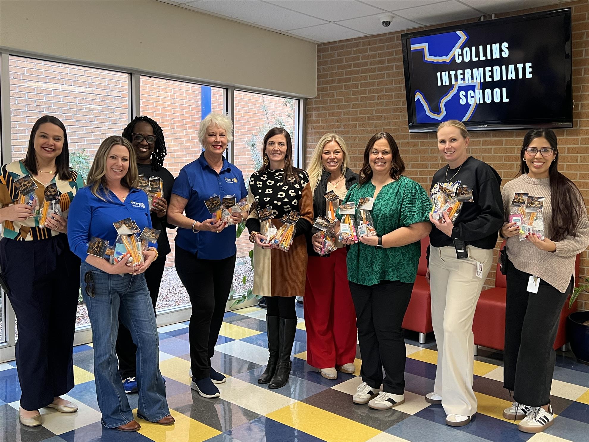 Corsicana Rotary Supporting CISD Teachers![]() By donating school supplies, the Corsicana Rotary Club helped create engaging, well-equipped classrooms where students can focus on learning and growth. The Club’s generosity showed the teachers and staff that their dedication is valued and supported! Pictured here is President Brenna Butler, Secretary Sue Lagomorsino, Leigh Moore, Whitney Autrey, President Nominee Alison Williams along with staff members of Collins Intermediate School in Corsicana.
