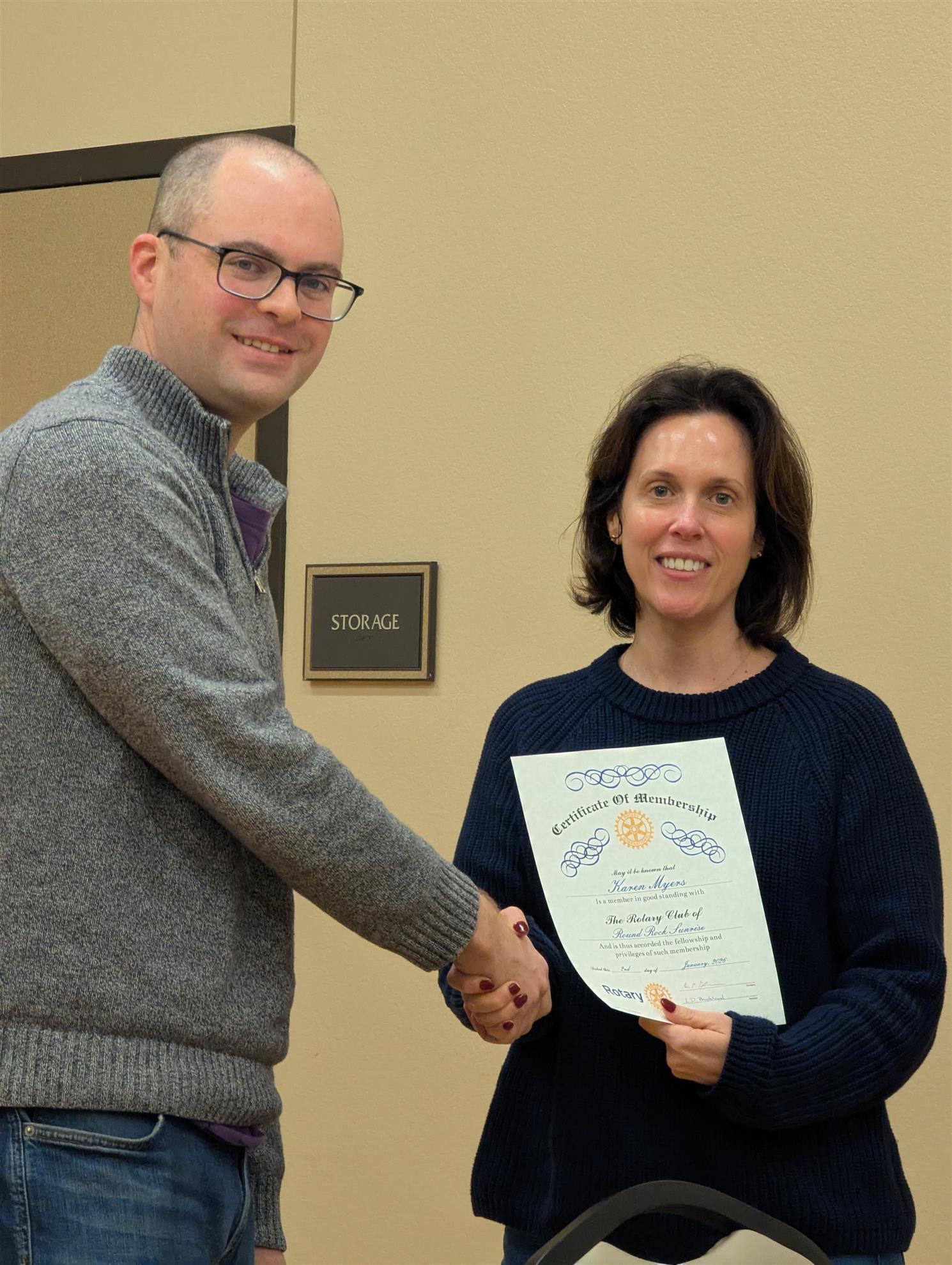 Welcome to Round Rock Sunrise Rotary, Karen Myers!![]() We’re excited to welcome Karen Myers, our newest Rotary member, inducted today! Karen is a long-time Round Rock resident, a finance professional, and someone who truly values community involvement. She’s looking forward to contributing to both local and global Rotary projects, and we’re thrilled to have her join our club.