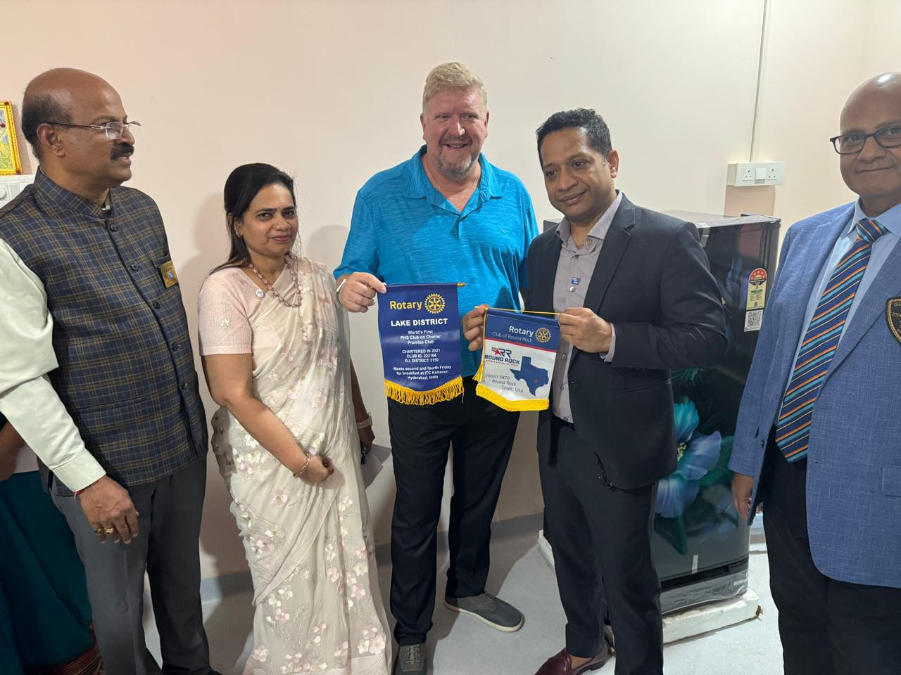 International Connections![]() Rotary Club of Round Rock member Brad Van Houten has embraced the “International” aspect of Rotary by recently exchanging flags with the Lake District Moinabad Rotary Club in India. While there, he visited two projects that their club was supporting at the Government-NIMS Hospital, a daycare facility for healthcare workers, and a Pediatric Neurology and EMU Unit. This could be the beginning of an international connection between our two clubs. Great work Brad!